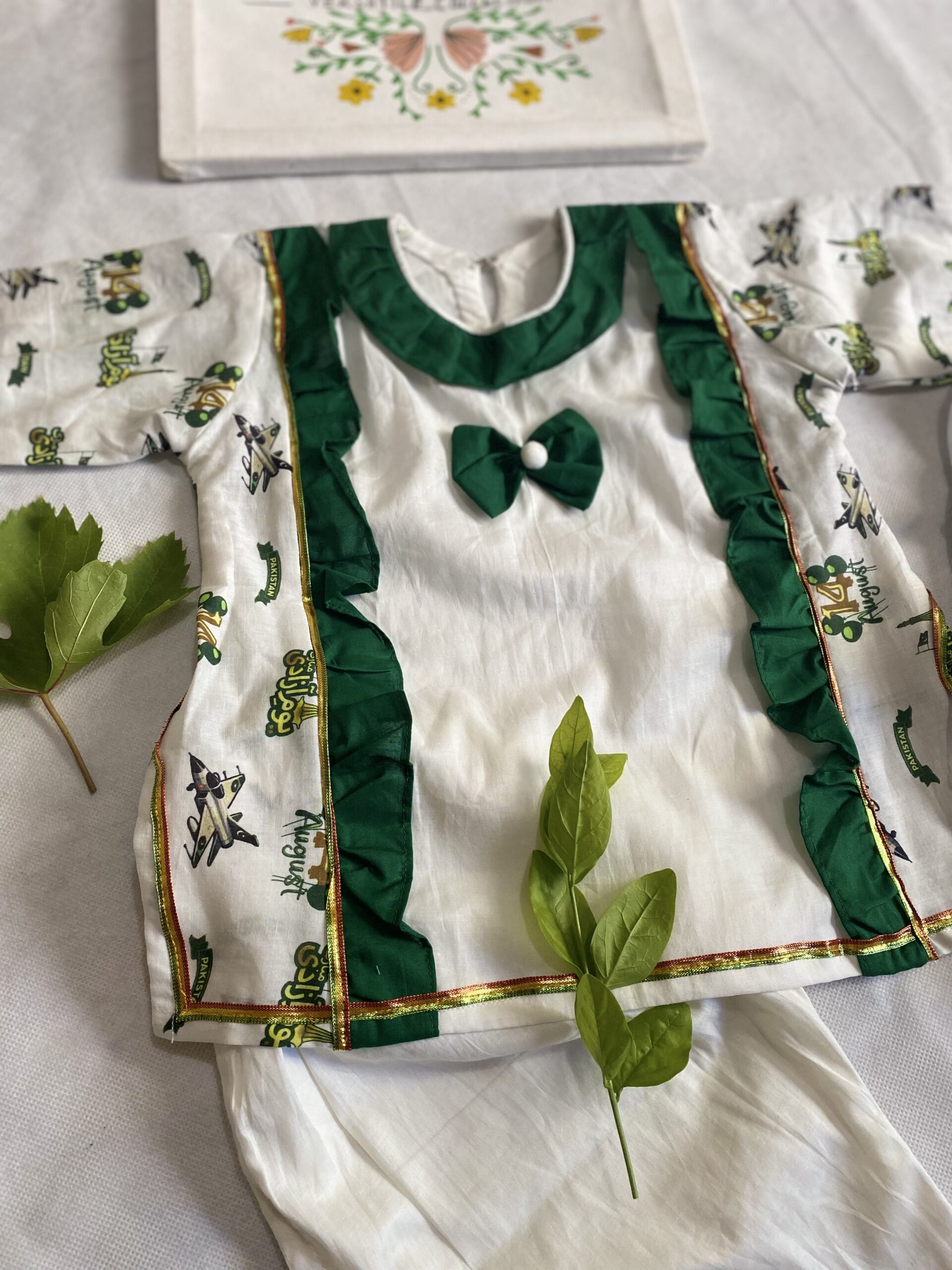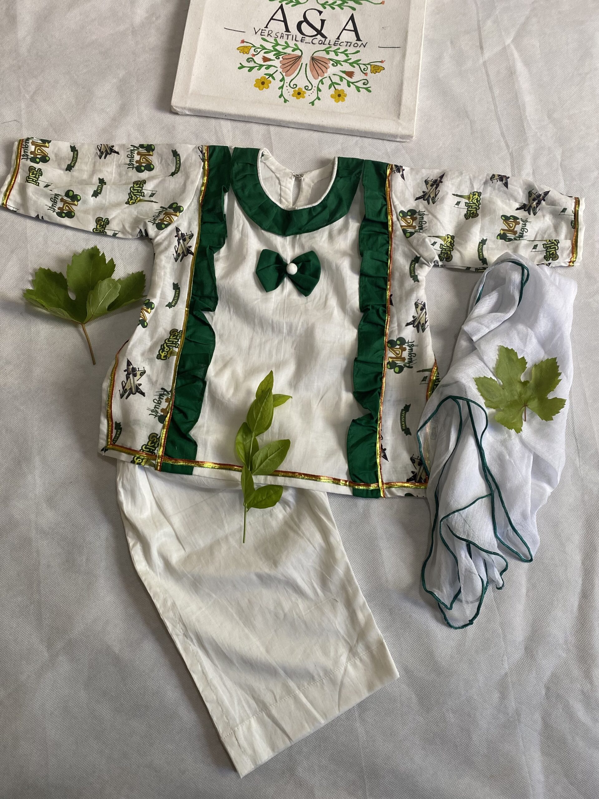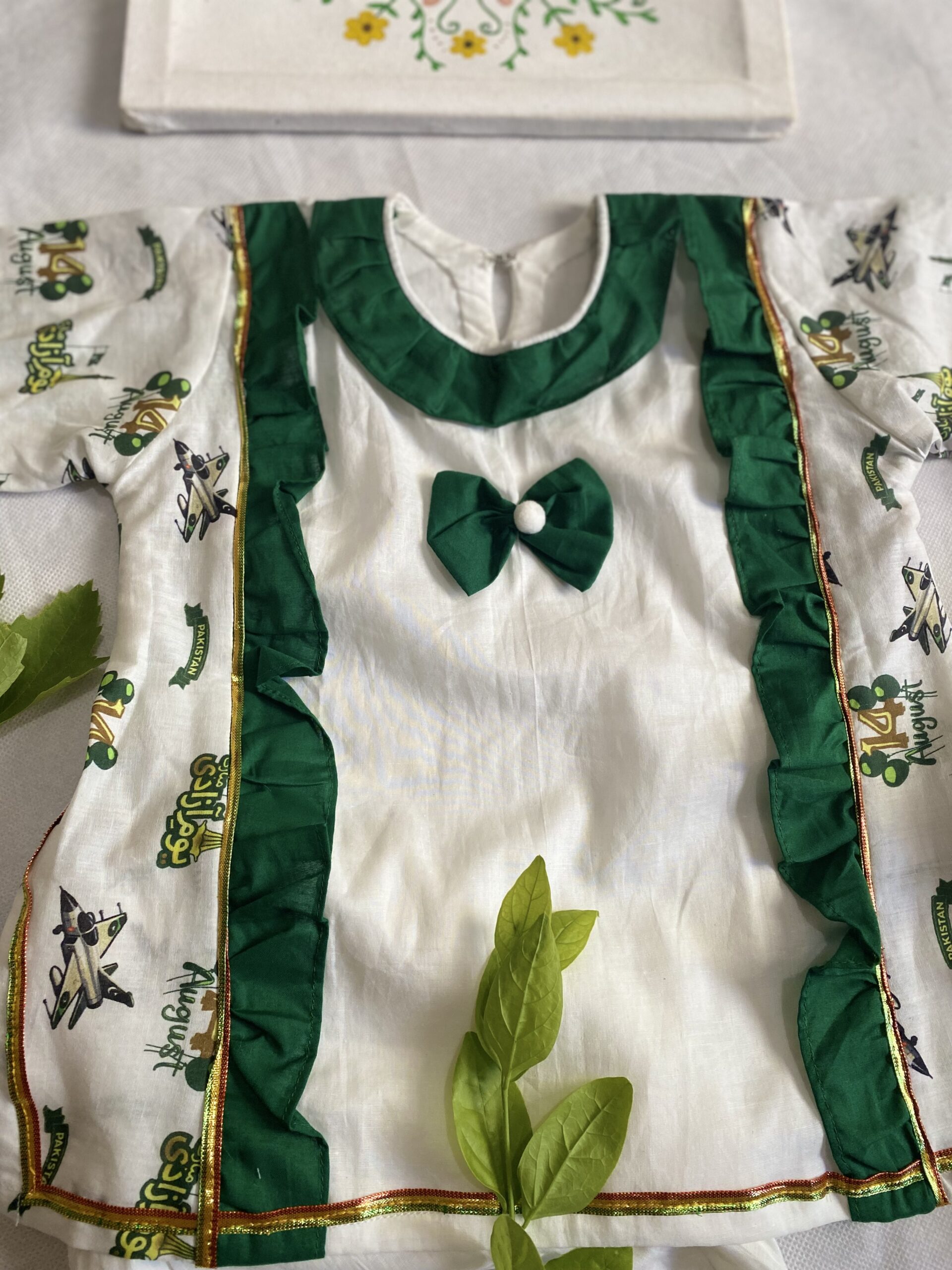 Celebrate Azadi in style with this adorable white & green 3-piece dress for your 2-year-old girl!